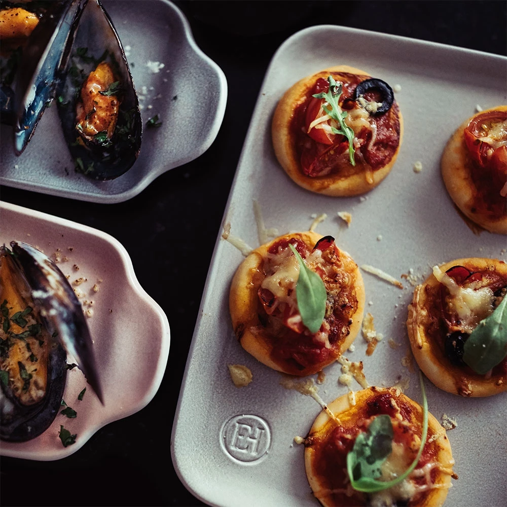 Ein Muss für heiße Snacks – direkt vom Ofen zum Tisch. Praktisch zum Servieren von heißen Snacks und gebackenen Vorspeisen. HR Ceramic, natürliche Lasur, spülmaschinen- und gefrierschranksicher.