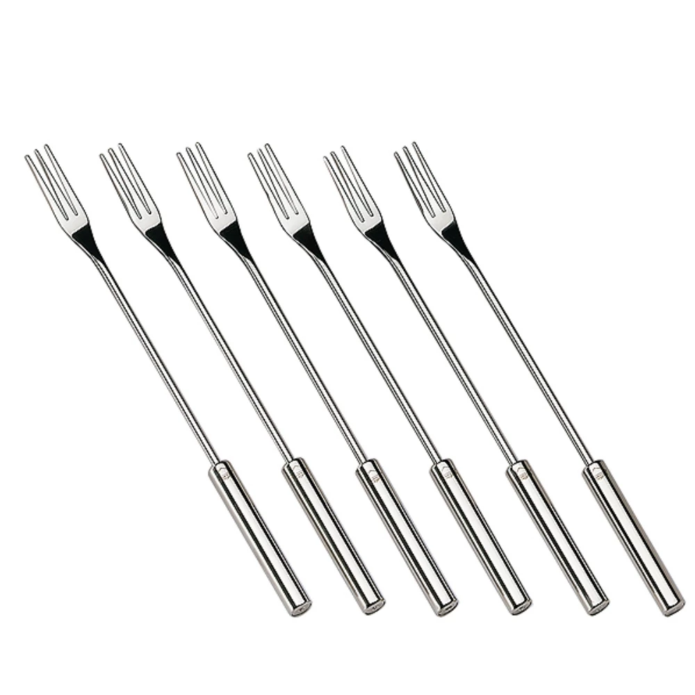 Es ist die ursprüngliche Form des Fondues: das Käsefondue. Der Klassiker der Alpen-Küche hat viele Fans, die sich das Geschmackserlebnis aus würzigem Käse, der feine Weißbrotstückchen umhüllt, nicht entgehen lassen. Die Käsefonduegabeln CHEESE von KÜCHENPROFI sind natürlich auch am Start. Sie kommen im 6er Set daher und bestehen aus rostfreiem Edelstahl. Die Griffe liegen gut in der Hand, die Gabeln sind ausreichend lang und halten mit ihren drei Zinken die Brot-stückchen fest. Die Gabeln können bequem in der Spülmaschine gereinigt werden.
