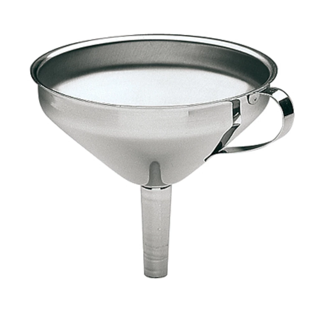 Wenn saubere Ergebnisse gefragt sind, ist er dabei. Der Trichter von KÜCHENPROFI füllt das Olivenöl in die Tischkaraffe, den hausgemachten Eistee in die Thermoskanne fürs Picknick und bringt die Zutaten für den Lieblingscocktail im Shaker zusammen. Er ist immer zur Stelle, wenn Flüssigkeiten ohne Flecken und Verluste den Ort wechseln sollen. Der Trichter hat einen praktischen Griff, die ausreichend breite Öffnung lässt sich gut befüllen. Der solide Edelstahl sitzt sicher auf dem zu befüllenden Gefäß und lässt sich leicht reinigen.