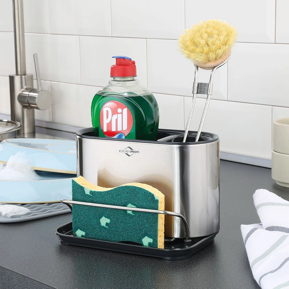 - Separate Fächer für Spülmittelflasche und Spülbürste