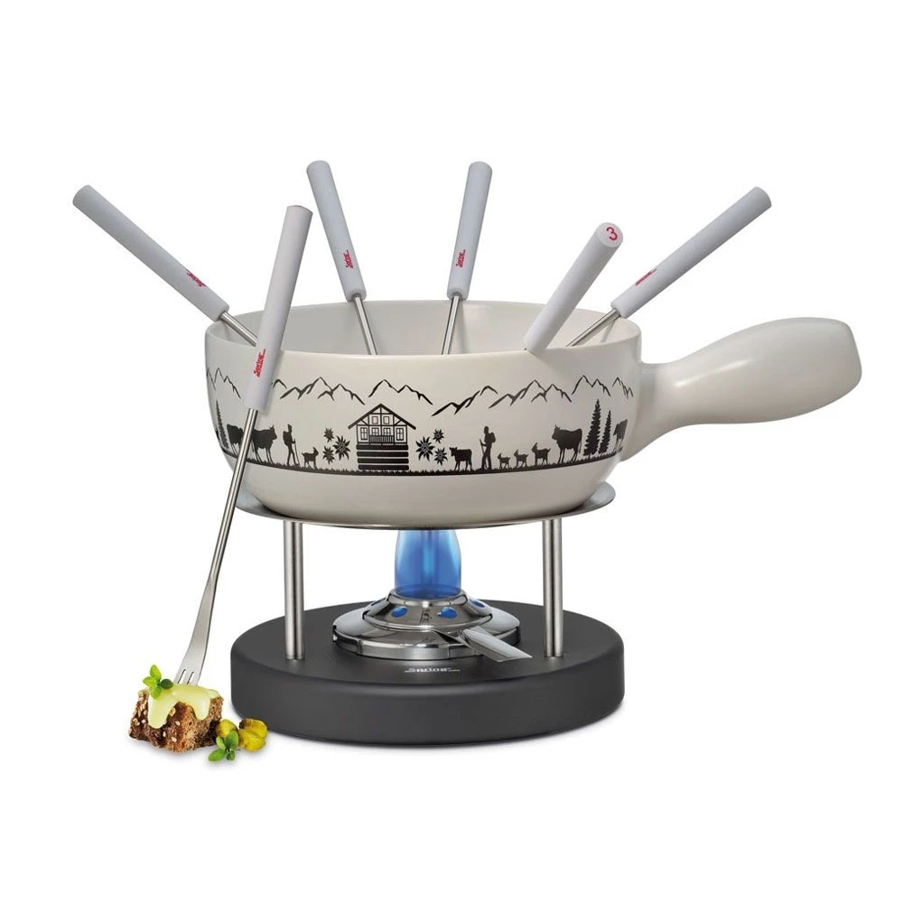 - Inkl. Sicherheits-Pastenbrenner und 6 Fondue-Gabeln